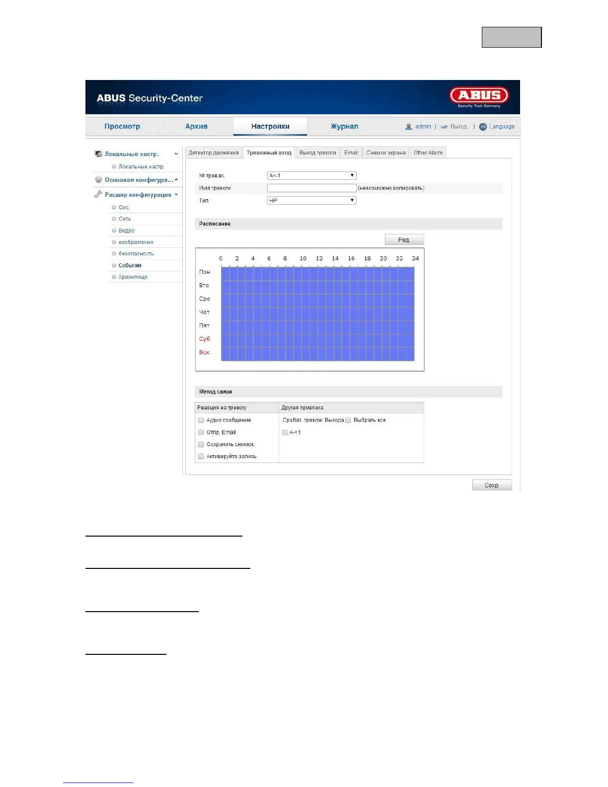 В данном пункте меню вы можете изменить настройки входа аварийного сигнала