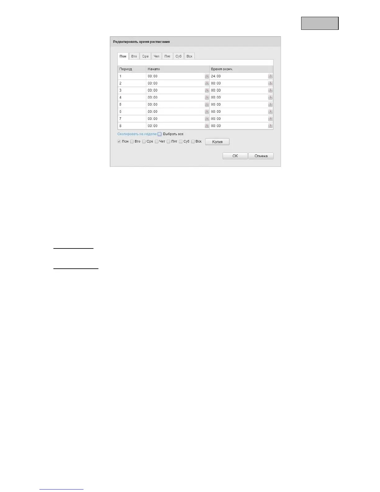 «Выбрать все». Чтобы скопировать настройки для других дней недели, выберите нужный день недели