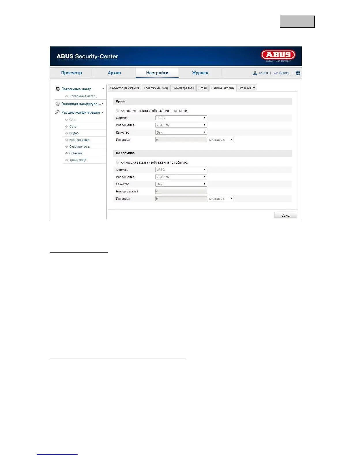 Активируйте данную функцию для сохранения изображения при наступлении определенных событий.