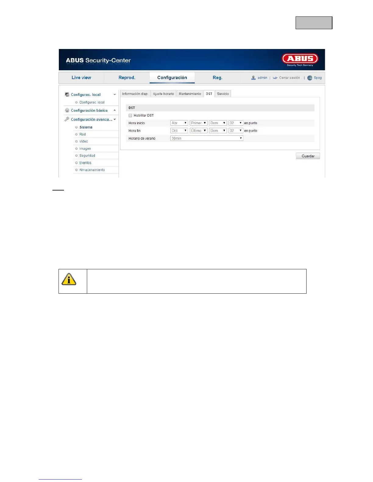 Seleccione “DST” para ajustar automáticamente la hora del sistema a la hora de verano.
