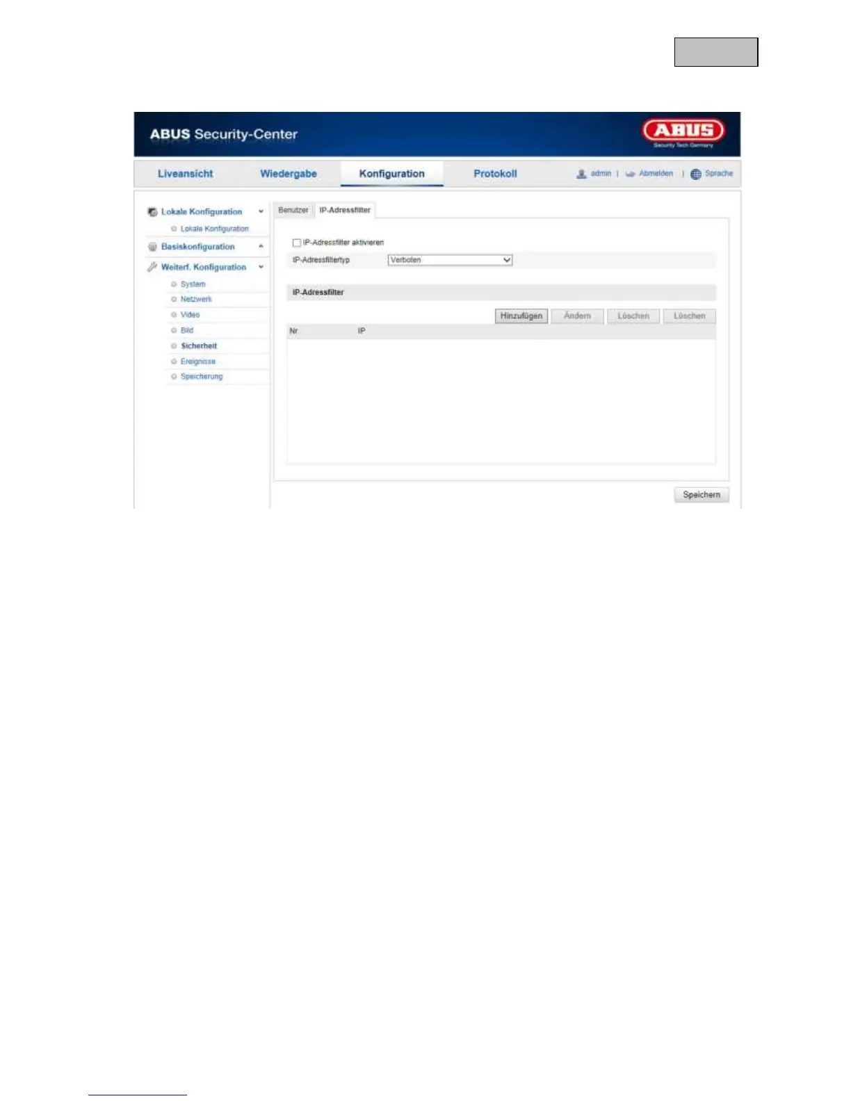 Verboten: Die weiter unten definierten IP Adressen werden geblockt. Die Eingabe einer IP erfolg über das