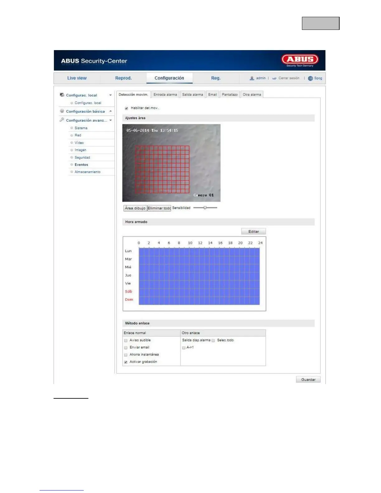 Active la detección de movimiento marcando la casilla de verificación “Habilitar det. mov.”.