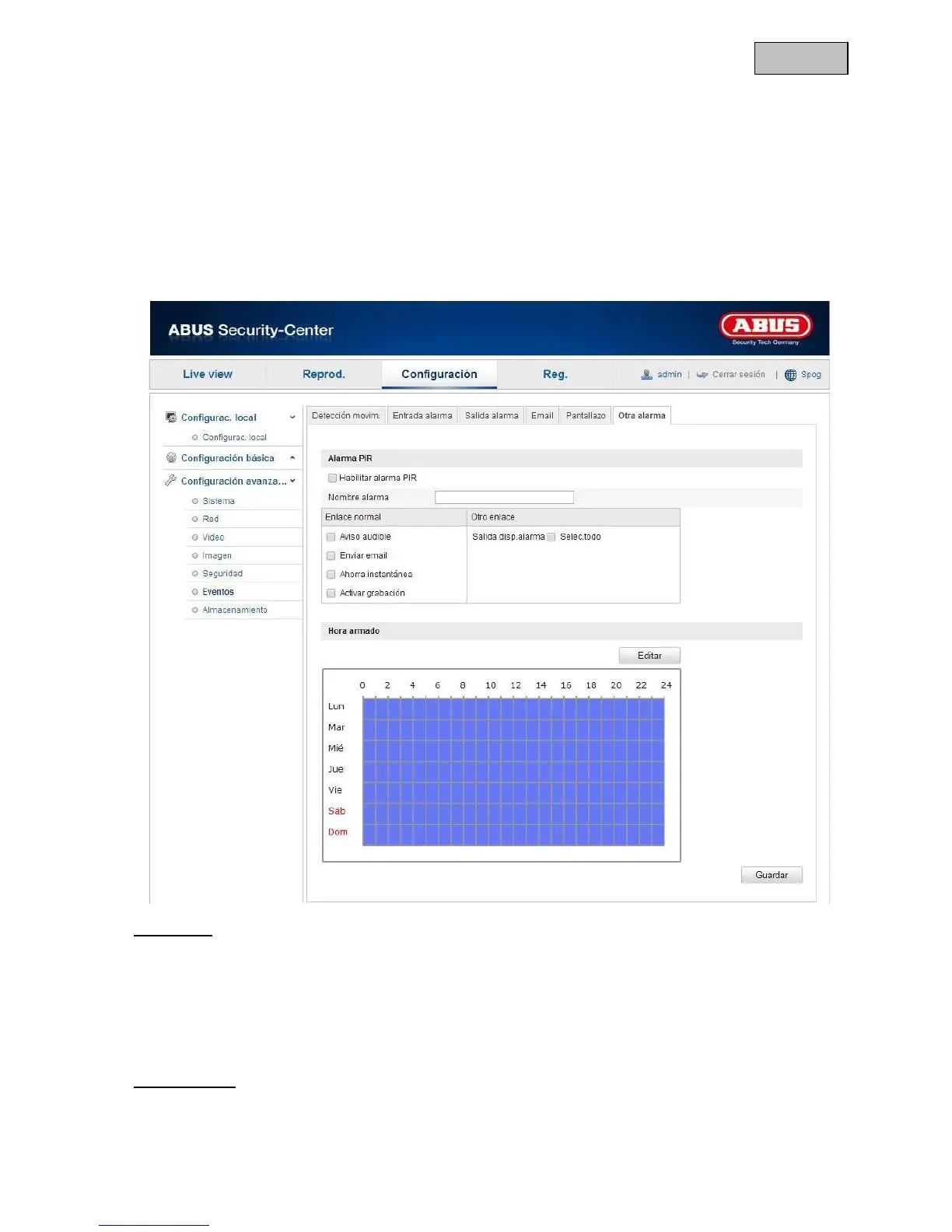 Activación de la alarma PIR