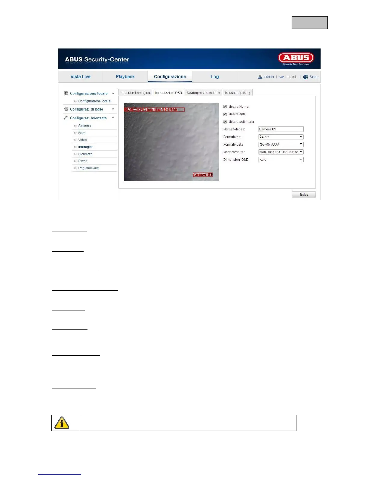 Inserire qui il nome della videocamera che deve essere visualizzato sull’immagine.