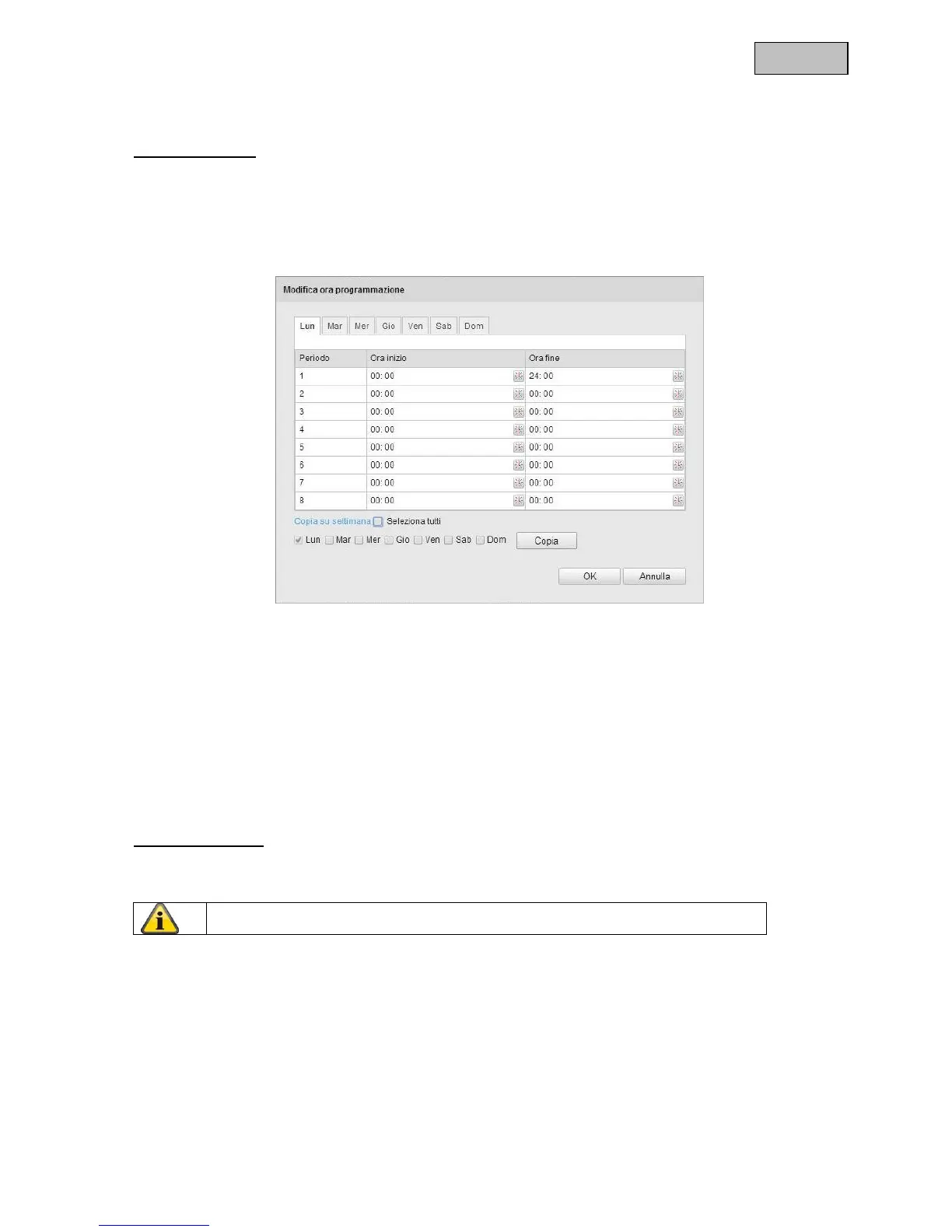 rilevamento del movimento relativo all’intera giornata, selezionare come ora di inizio 00:00 e come ora di fine