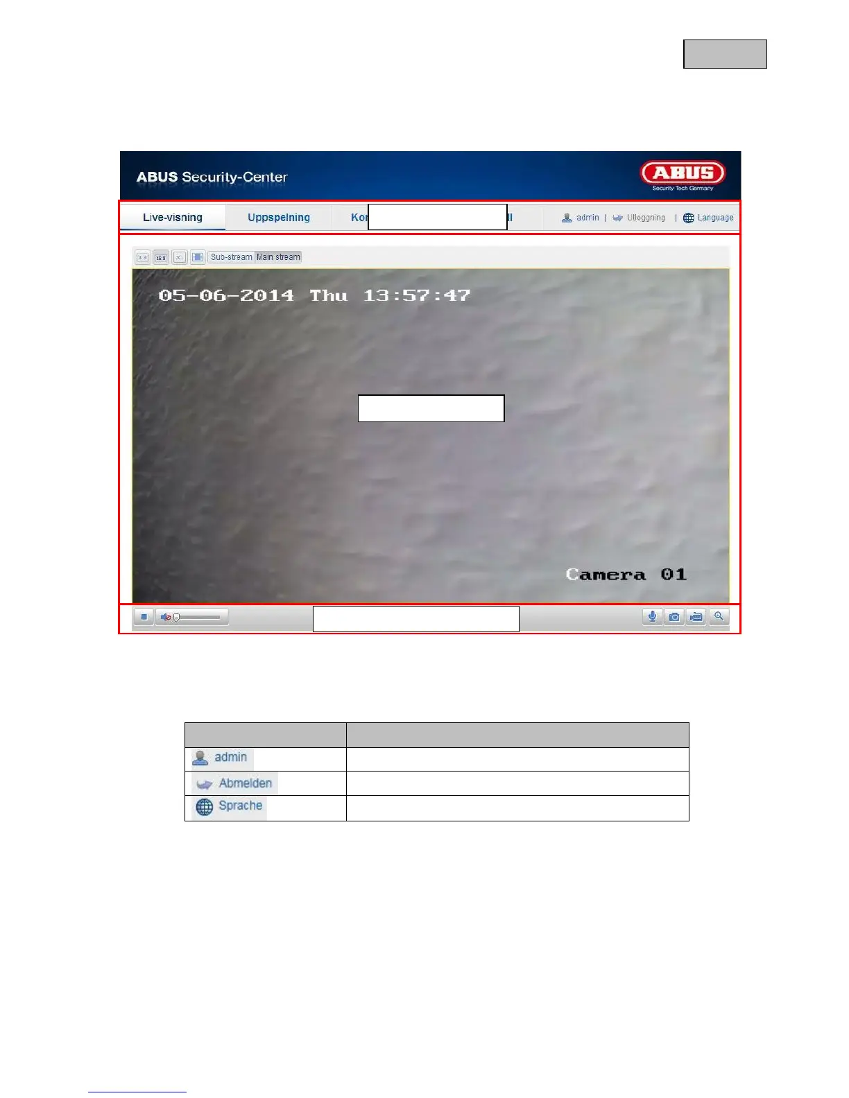 Abus TVIP11560 - 10 Användarfunktioner; Menyrad; Livevisning