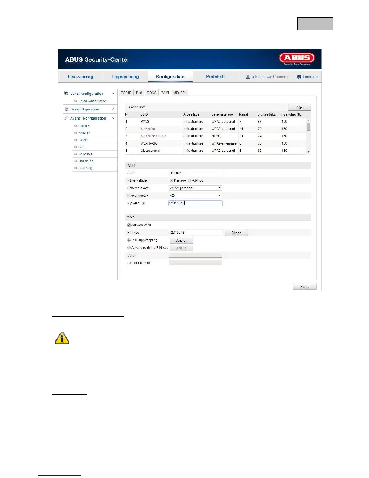 Klicka på ”Sök” för att visa tillgängliga WiFi-nätverk i den omedelbara närheten.