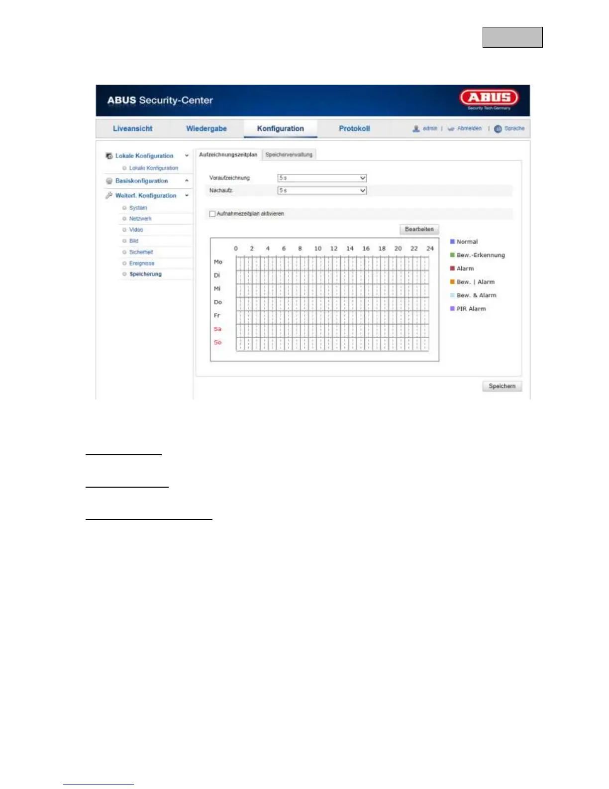 Sie können hier die Konfiguration für zeit- und ereignisgesteuerte Aufzeichnungen vornehmen um diese auf