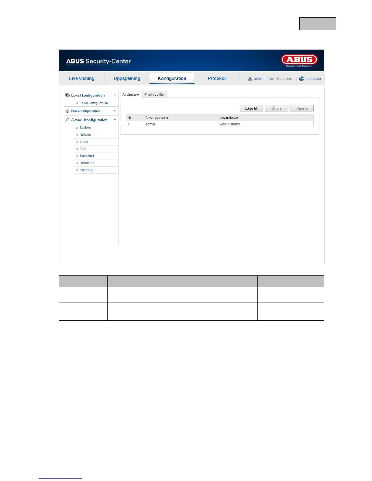Abus TVIP11560 - Användare; IP-Adressfilter