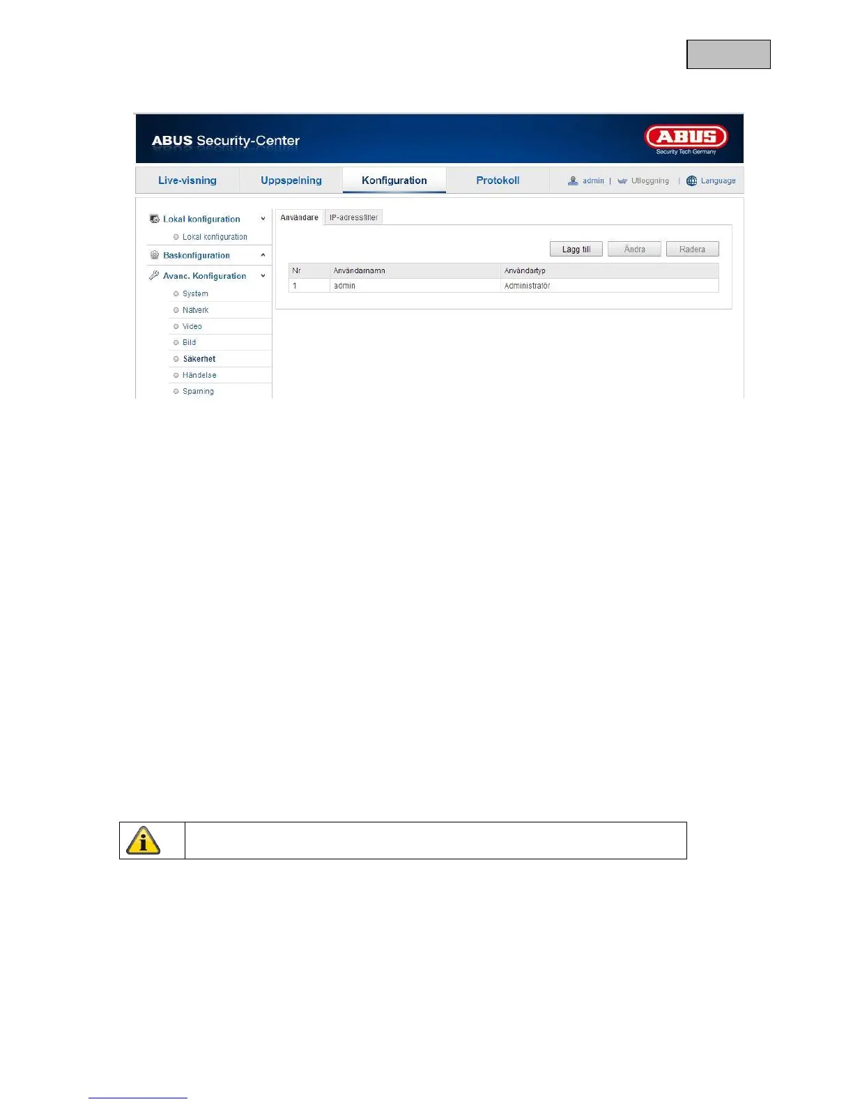 Klicka på ”Lägg till” eller ”Ändra” för att lägga till eller ändra en användare.