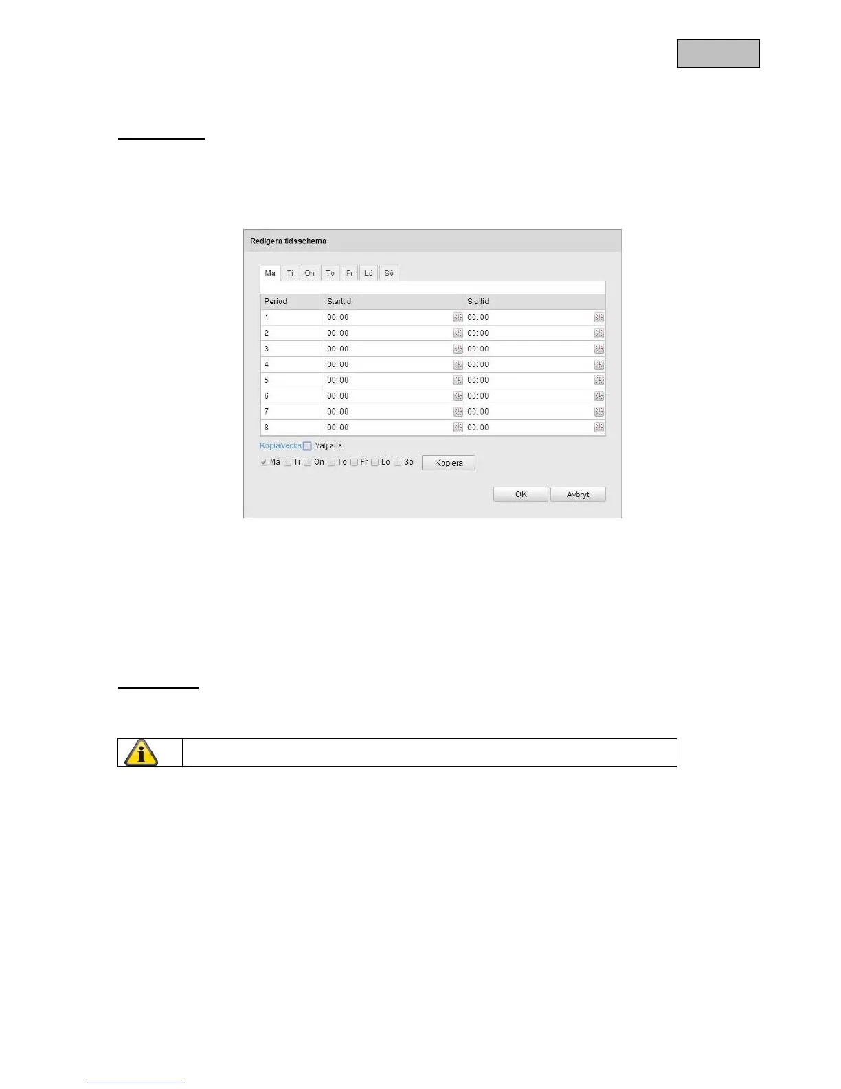 rörelsedetekteringen till andra veckodagar, välj veckodag och klicka på ”Kopiera”.
