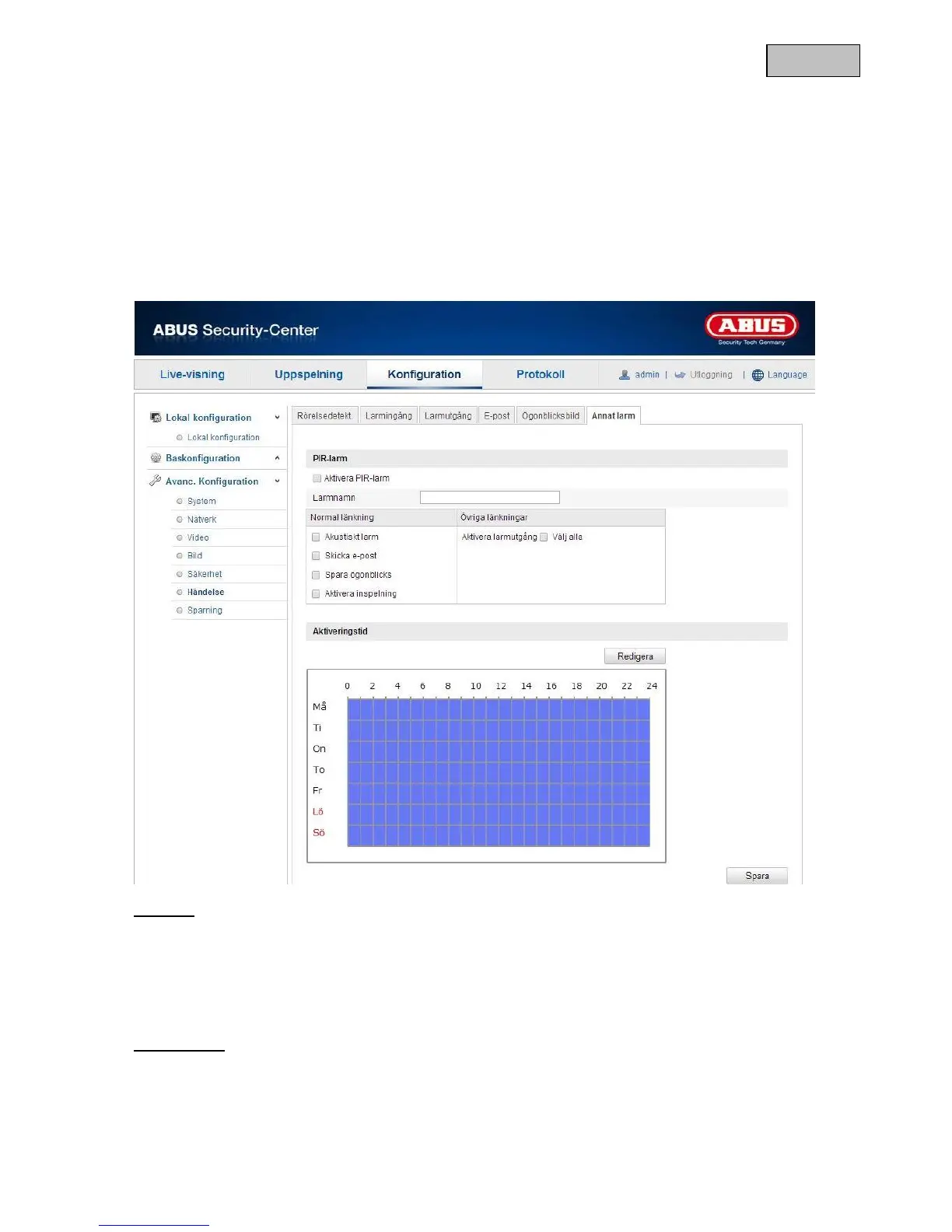 Här kan du ange ett namn för larmingången. Använd inte Larmingång nr och inga specialtecken.