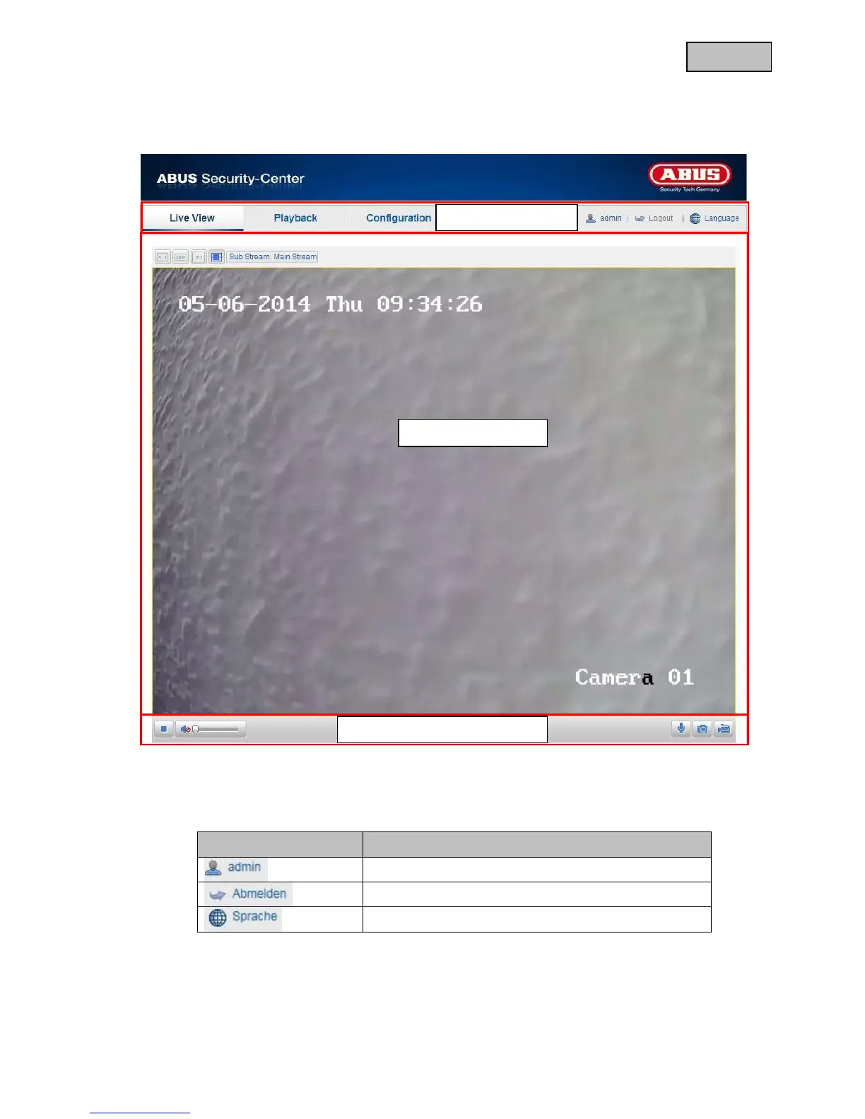 Open the main menu on the network camera. The interface is divided into the following main areas: