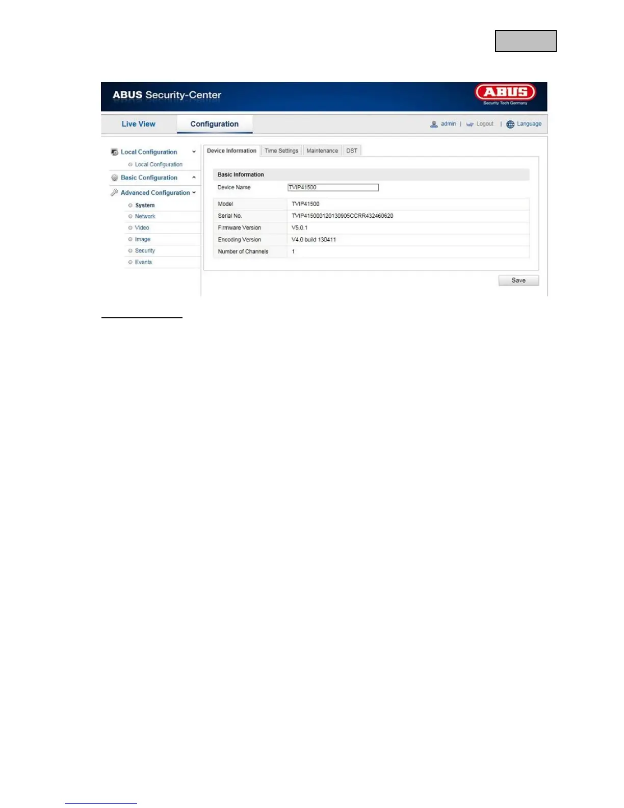 You can specify a device name for the Speed Dome here. Click on “Save” to apply the change.