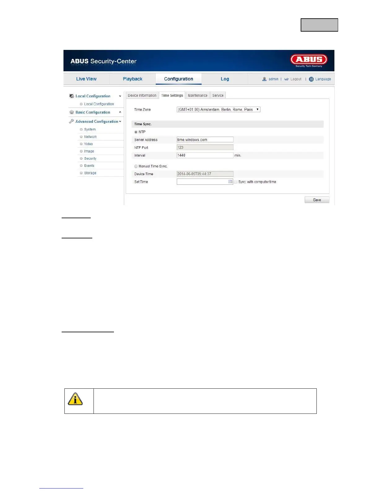 Using the Network Time Protocol (NTP) it is possible to synchronise the time of the Speed Dome with a