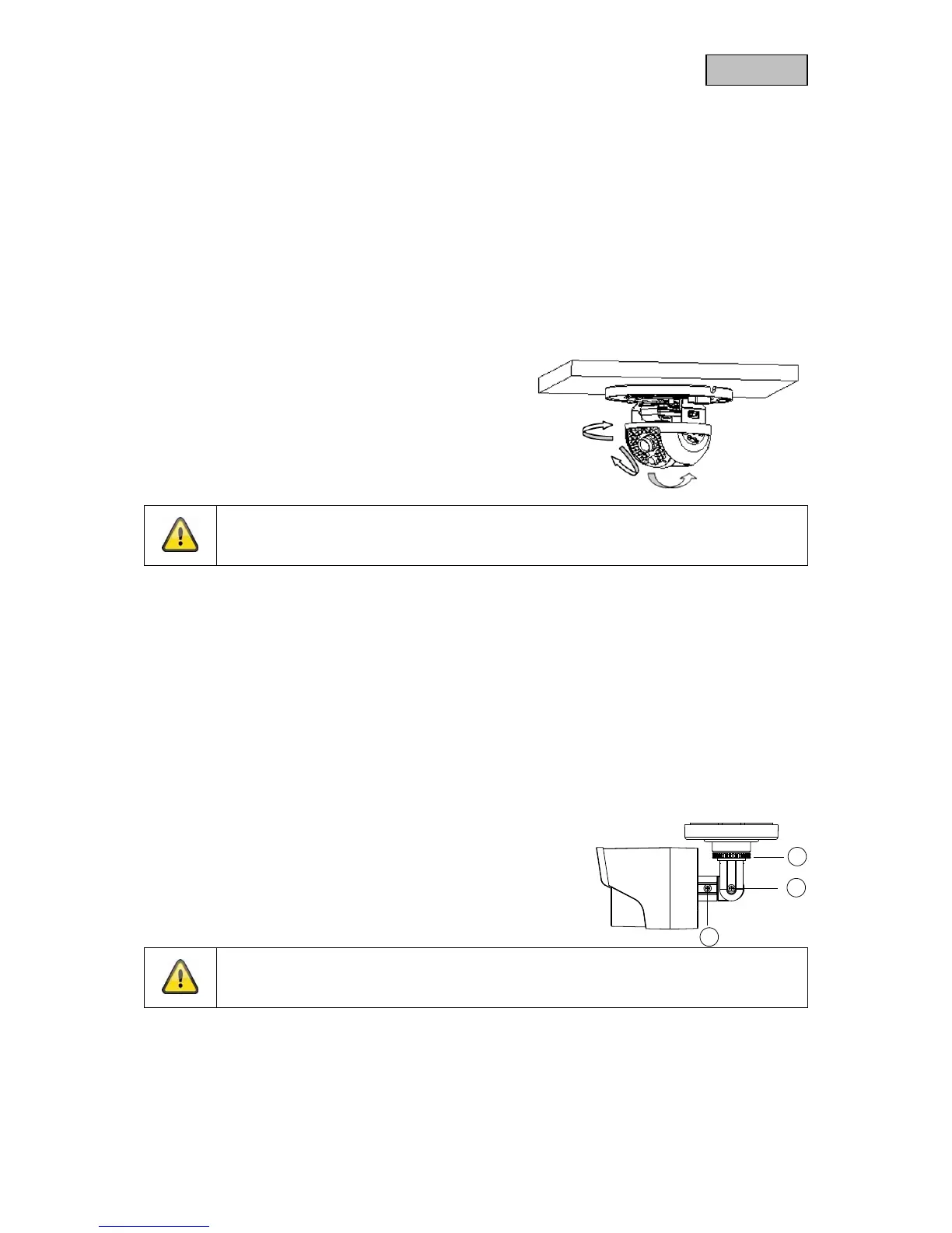 Use the fixing screws to screw the camera dome back on to the camera. Adjust the orientation of the
