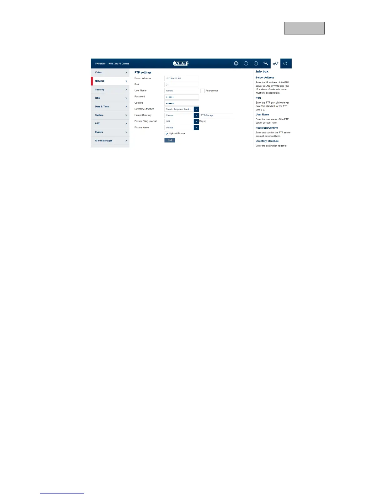 Upload Picture: Enable “Upload Picture” to upload pictures to the FTP server.