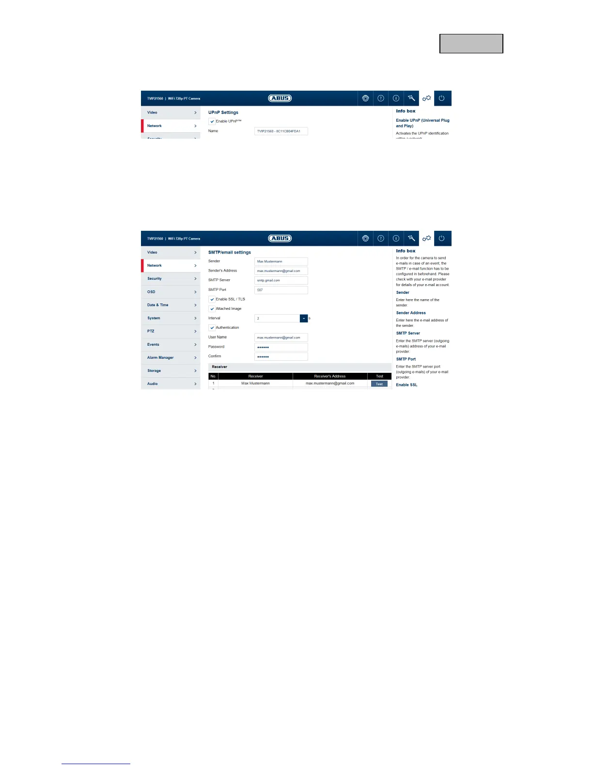 The SMTP/email function must be configured beforehand, so that the camera is able to send emails if