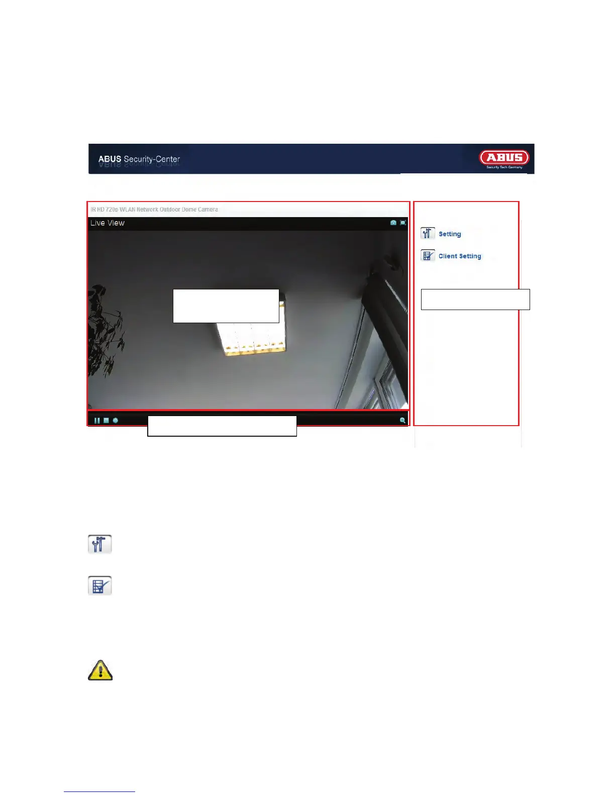 Open the main menu on the network camera. The interface is divided into the following main areas: