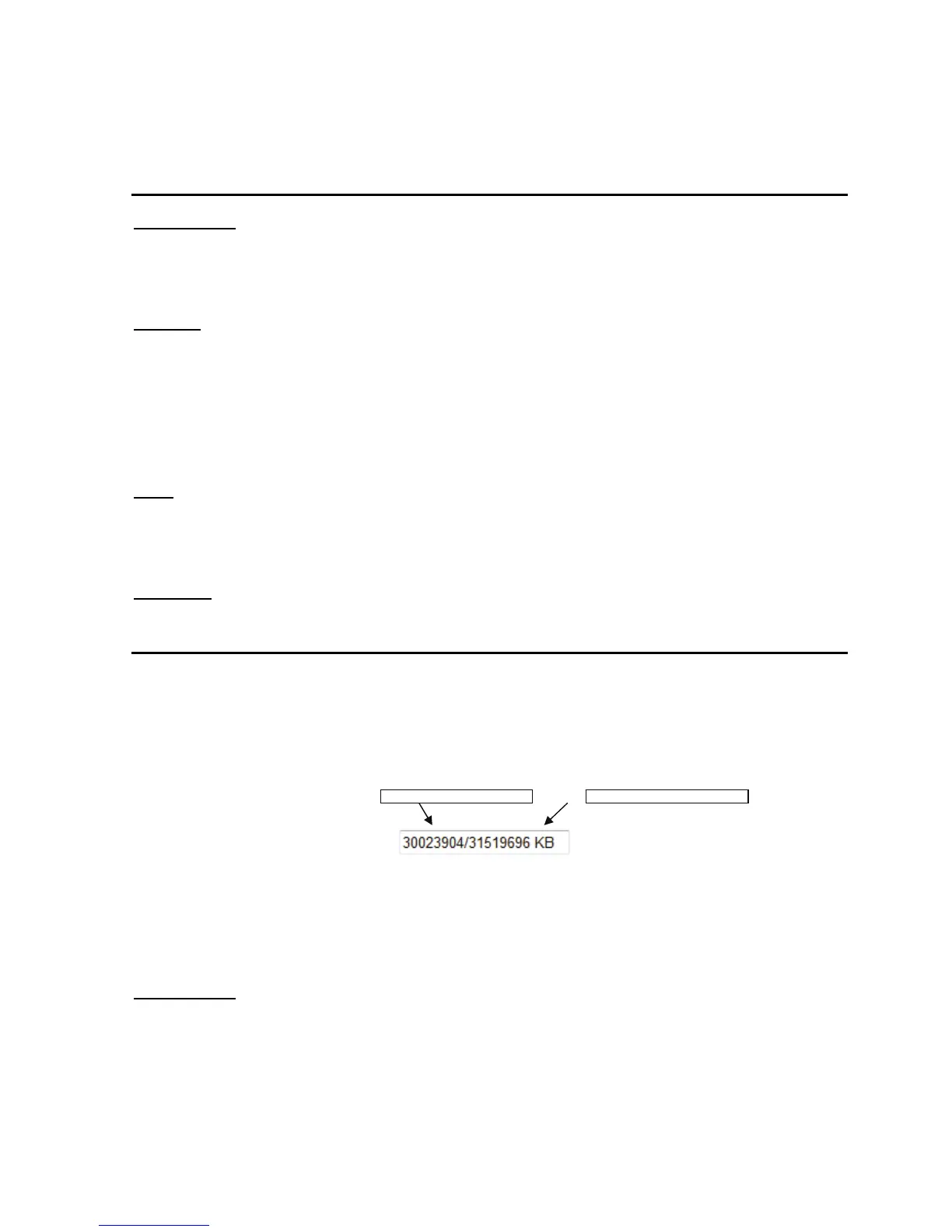Shows the free storage capacity and size of the memory card in KB.
