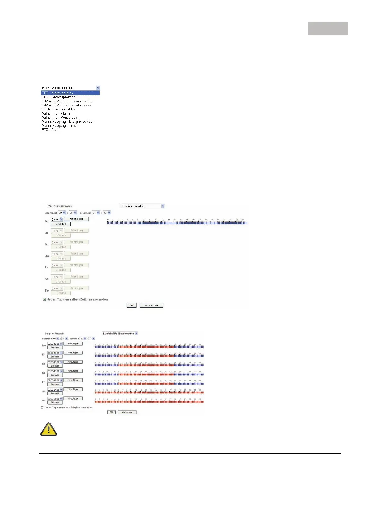 Löschen: Löschen es Zeitraums, der in der Auswahlbox des Tages ausgewählt wurde.