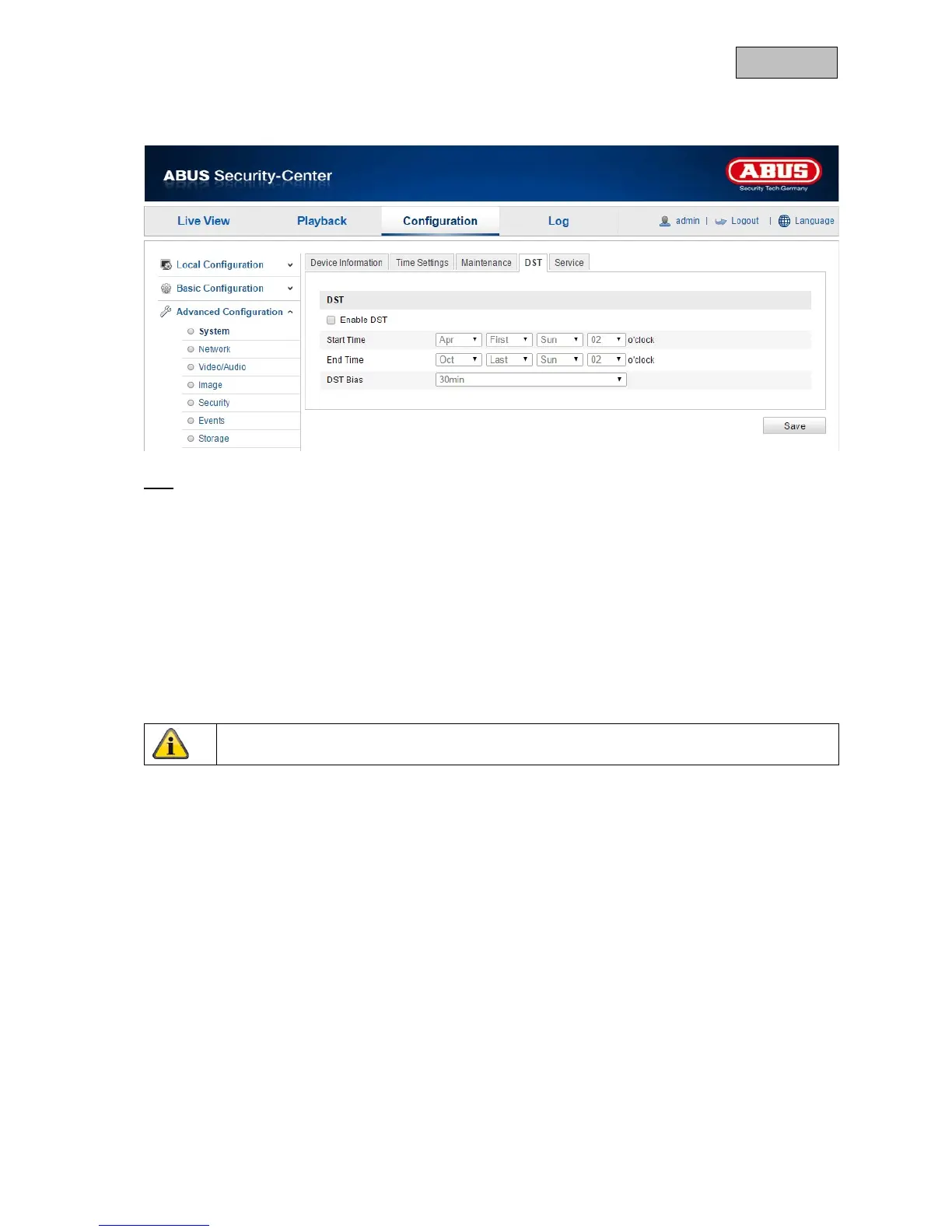 Select “Enable DST” to adjust the system time automatically to daylight saving time.