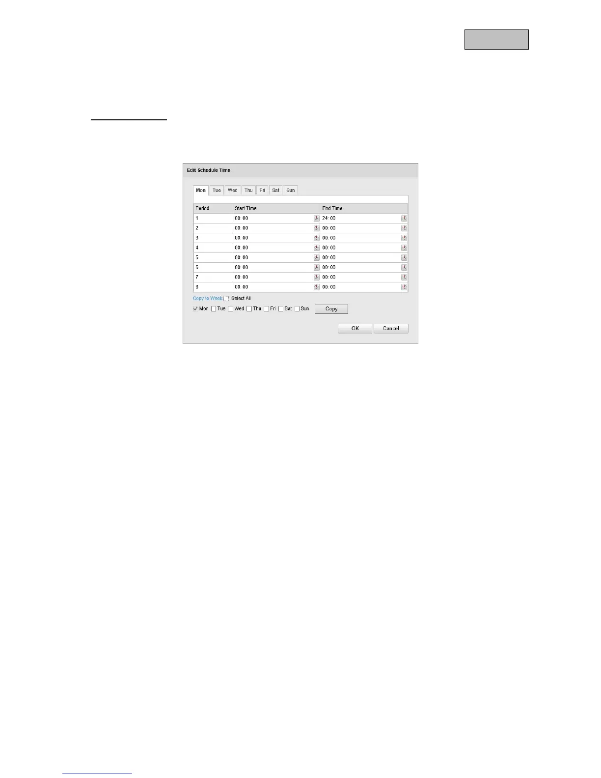 end time. To activate the alarm input all day, select 00:00 as the start time and 24:00 as the end time.