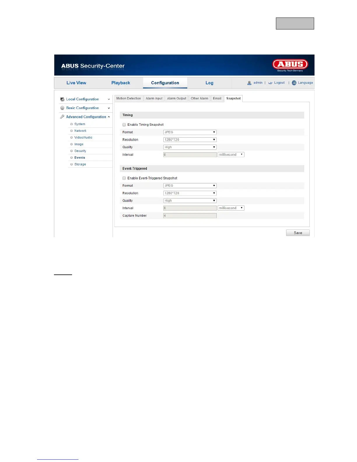Here, you can set the configuration for time and event-triggered snapshots in order to be able to save