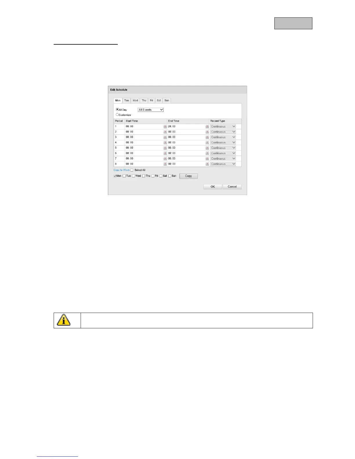 start and end time. To activate the alarm input all day, select 00:00 as the start time and 24:00 as the