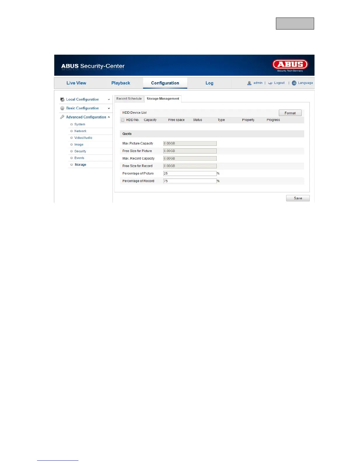 Abus TVIP21560 - Storage Management