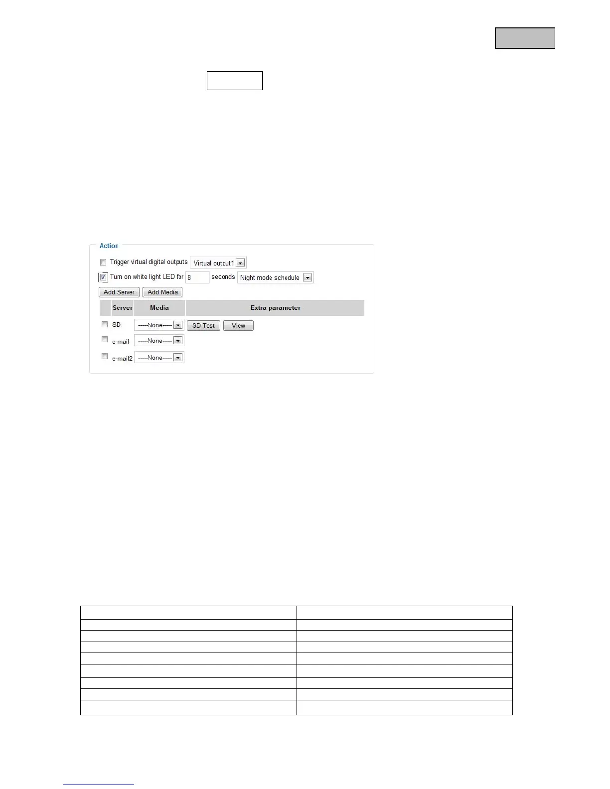 “Turn on white light LEDs” If the control field is activated, the white light LED on the camera will be turned