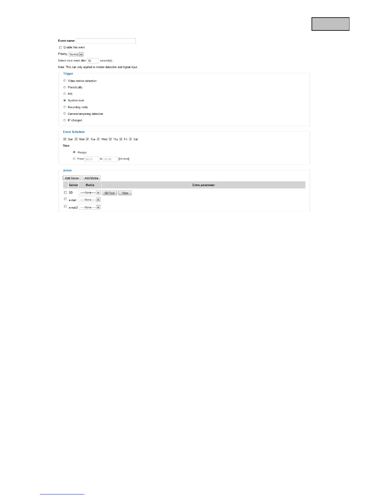 “System boot” Event is triggered when the system is rebooted (after a power failure).