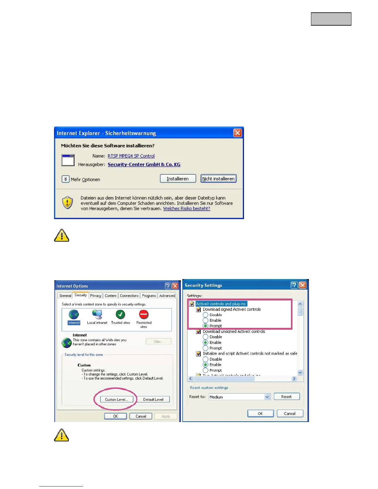 Les paramètres de sécurité d'Internet Explorer peuvent empêcher l'affichage du flux vidéo.