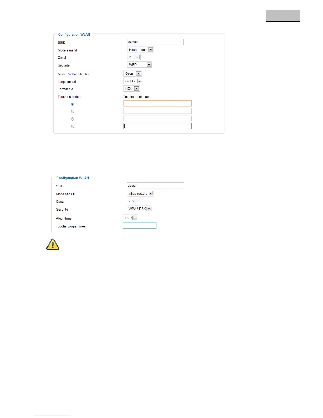 « Pre-Shared-Key » La saisie de cette clé a lieu en format ASCII avec une longueur de 8 à 63 caractères.