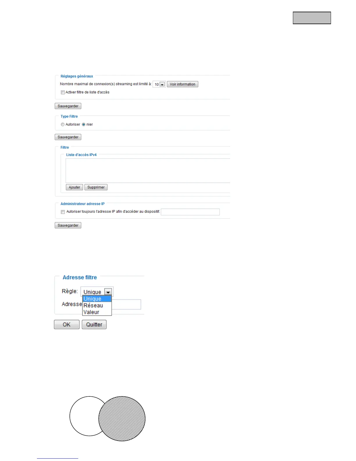 Valeur : une zone d’adresses IP « de – à » peut être définie.