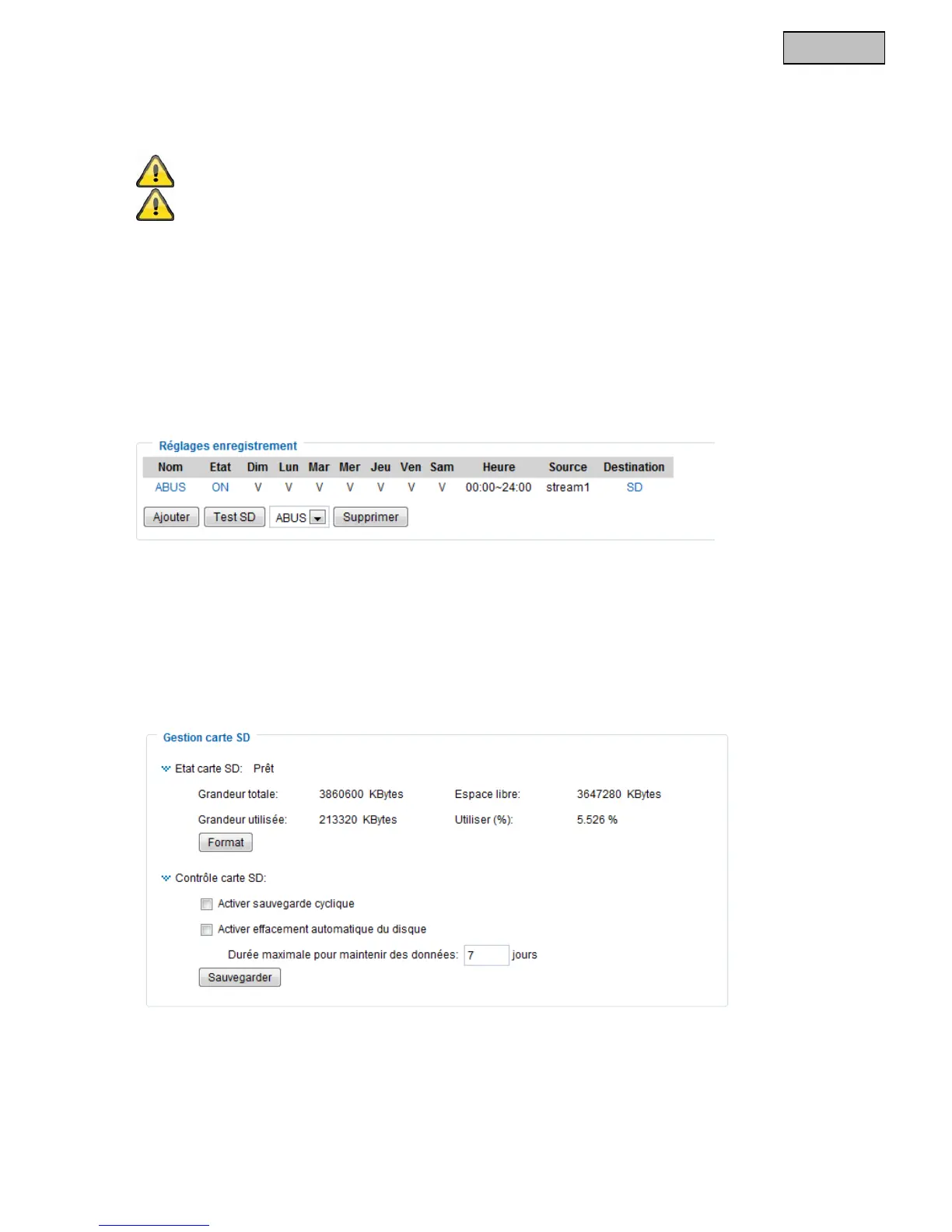 Utilisez la fonction « Format » lorsque vous utilisez la carte pour la première dans le caméra réseau.