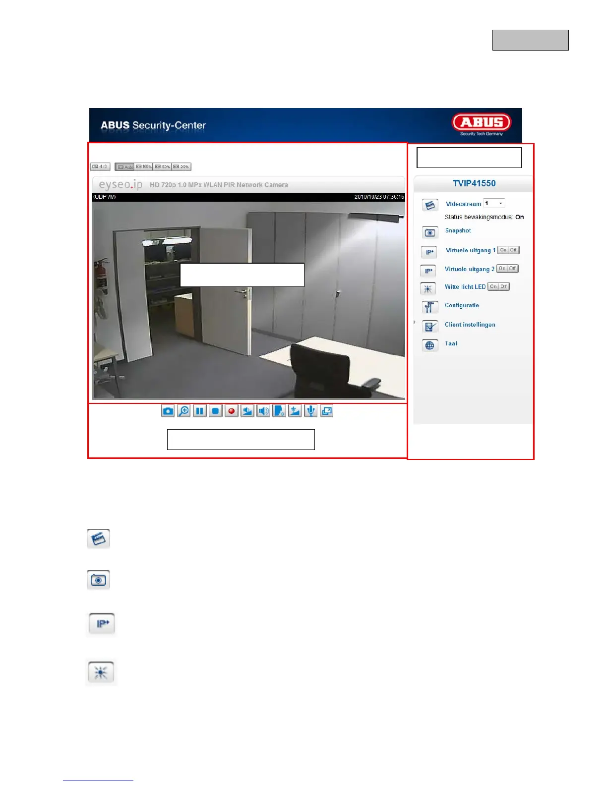 Kies tussen videostream 1-4 voor de livebeeldweergave