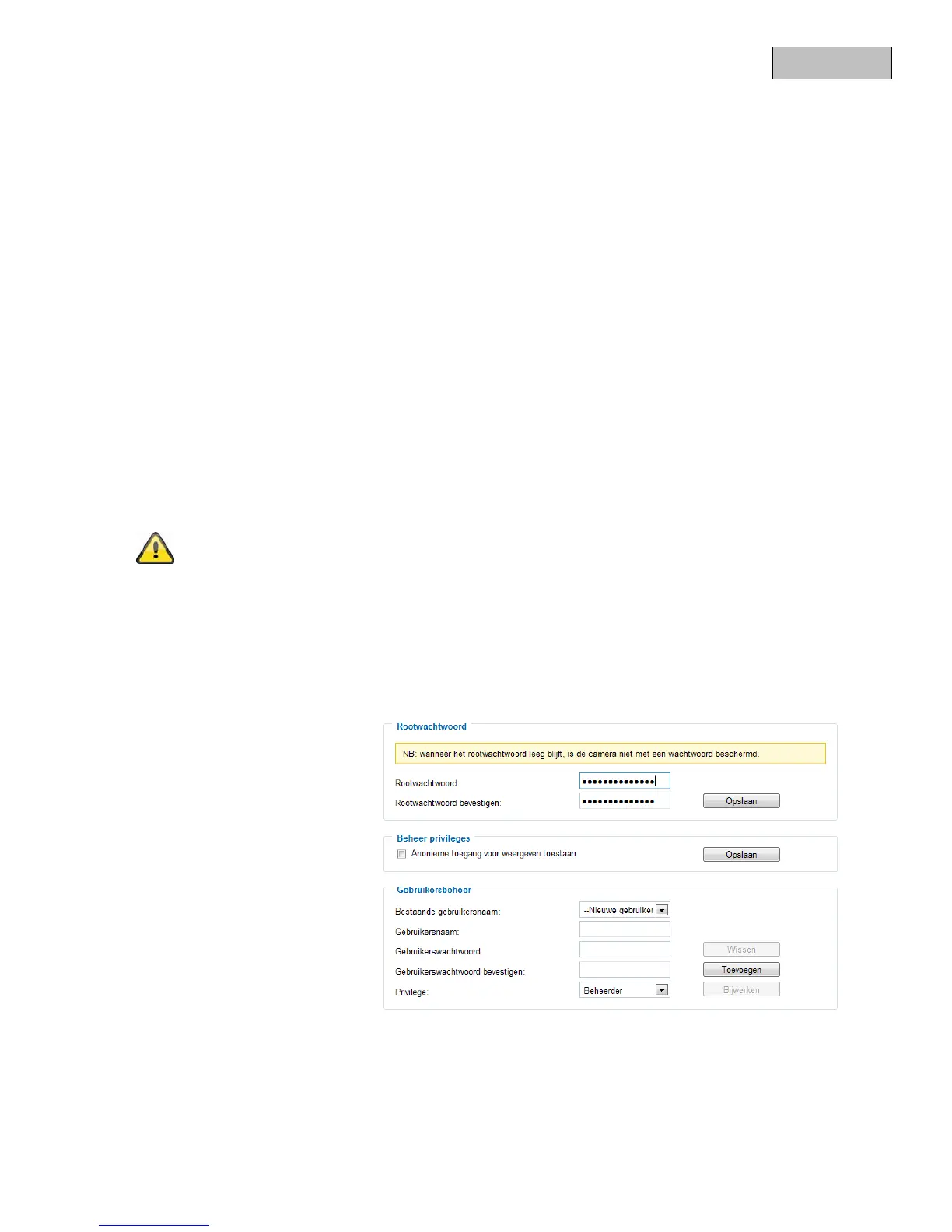 „Rootpaswoord” Dient voor het wijzigen van het administratorpaswoord door het invoeren van het nieuwe