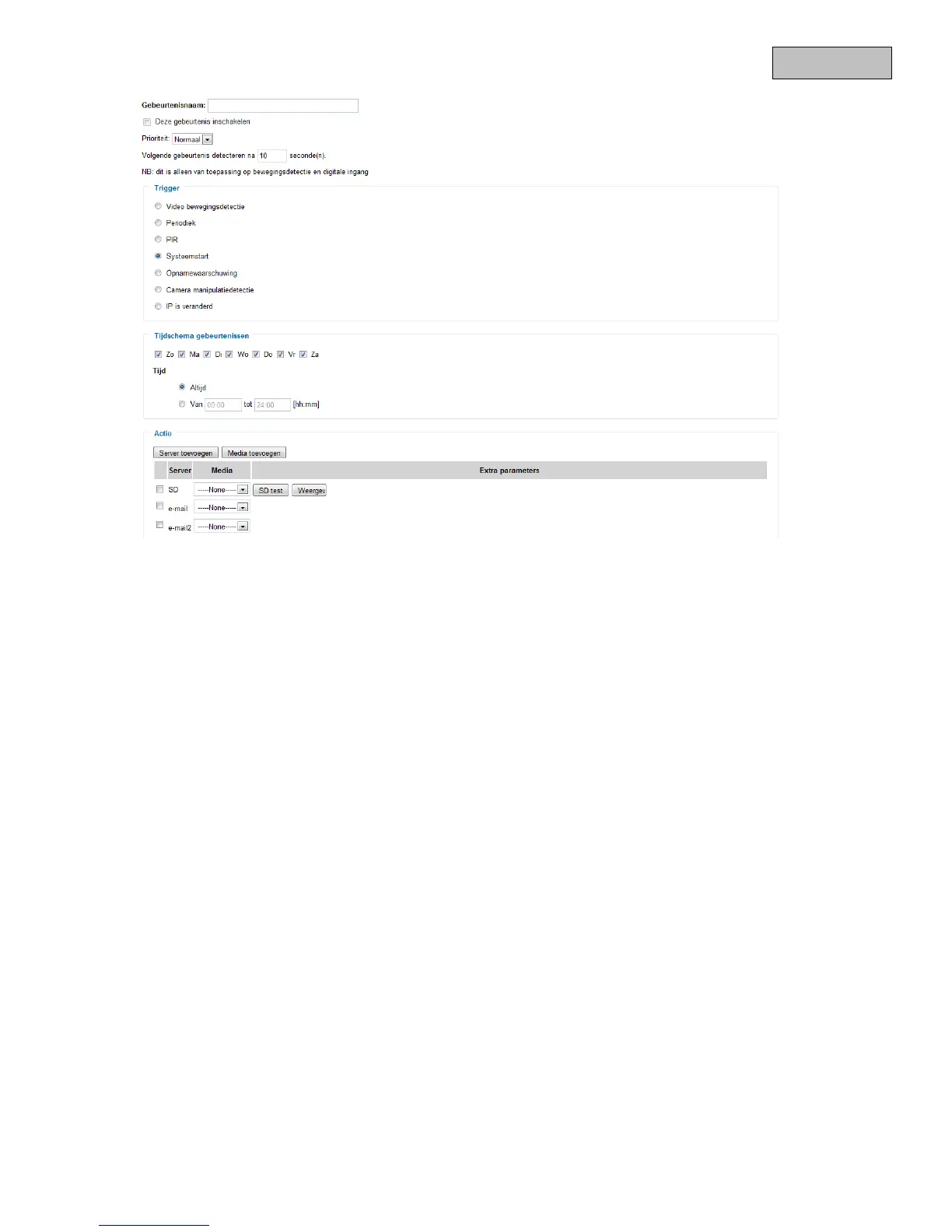 De instellingen voor server en media in de gebeurtenisinstellingen zijn identiek aan de bewakingsmodus.