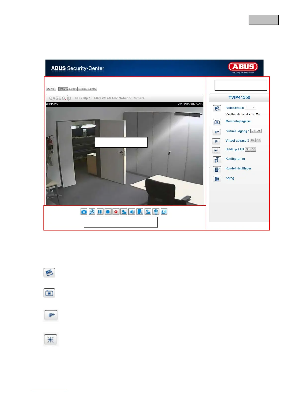 Åbn videoserverens startside. Overfladen er opdelt i følgende hovedområder: