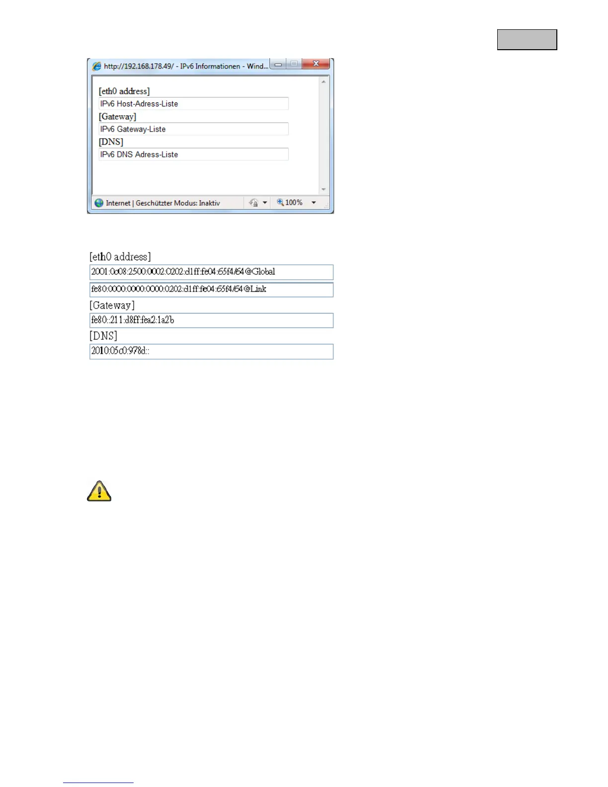 Hvis IPv6-indstillingerne er korrekte, kan du aflæse alle indstillinger i det nederste vindue.