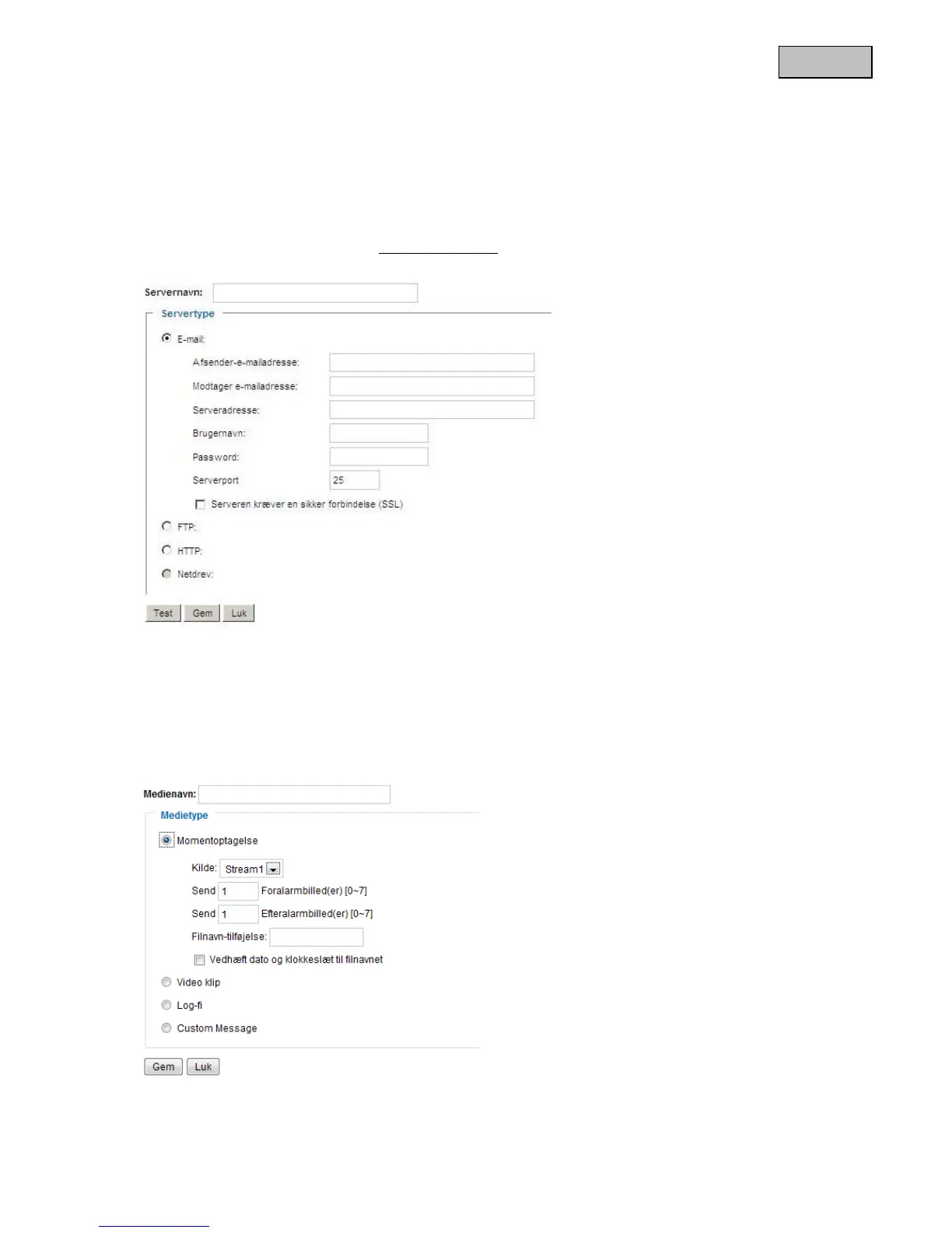 Der kan gemmes 5 servere i netværkkameraet. Klik på “Tilføj” for at konfigurere en ny server. Serveren af