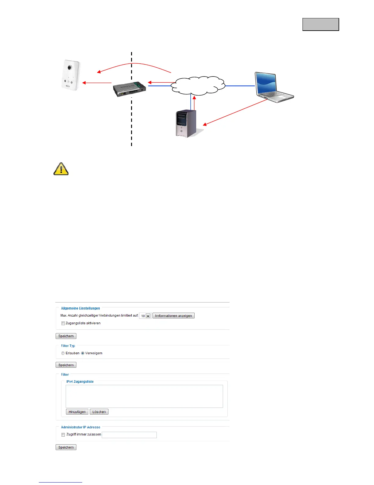 Folgende Abbildung veranschaulicht den Zugriff auf eine Netzwerkkamera hinter einem Router über
