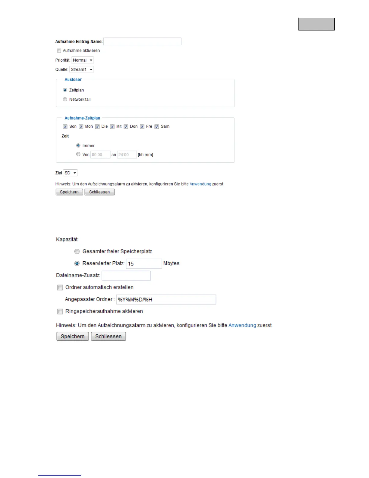 „Quelle“ Die Aufnahme kann von Video-Stream 1-4 erfolgen.