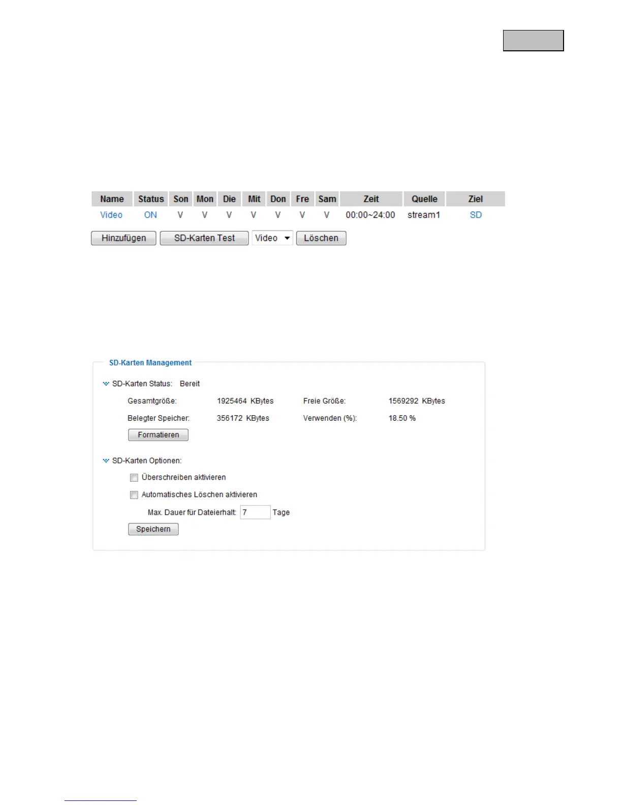 Aktivieren Sie die Option „Automatisches Löschen“ wird nach Eingabe der maximalen Vorhaltezeit die SD-