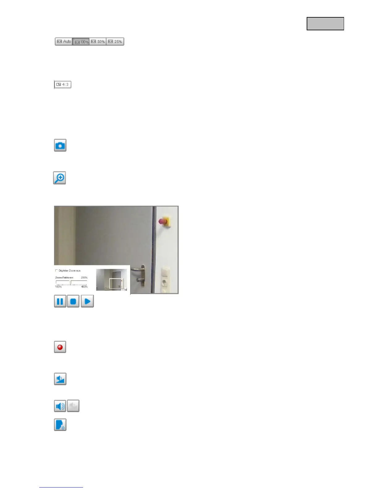 Using these buttons, you can choose from three different zoom levels for the live picture (100%, 50% and