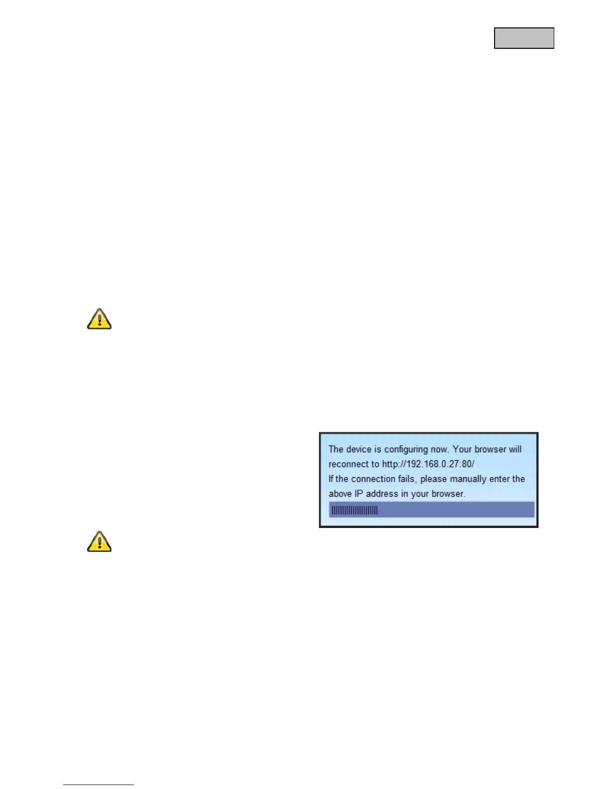 “Save”. A progress bar will be displayed while the configuration is being saved. The status LED changes