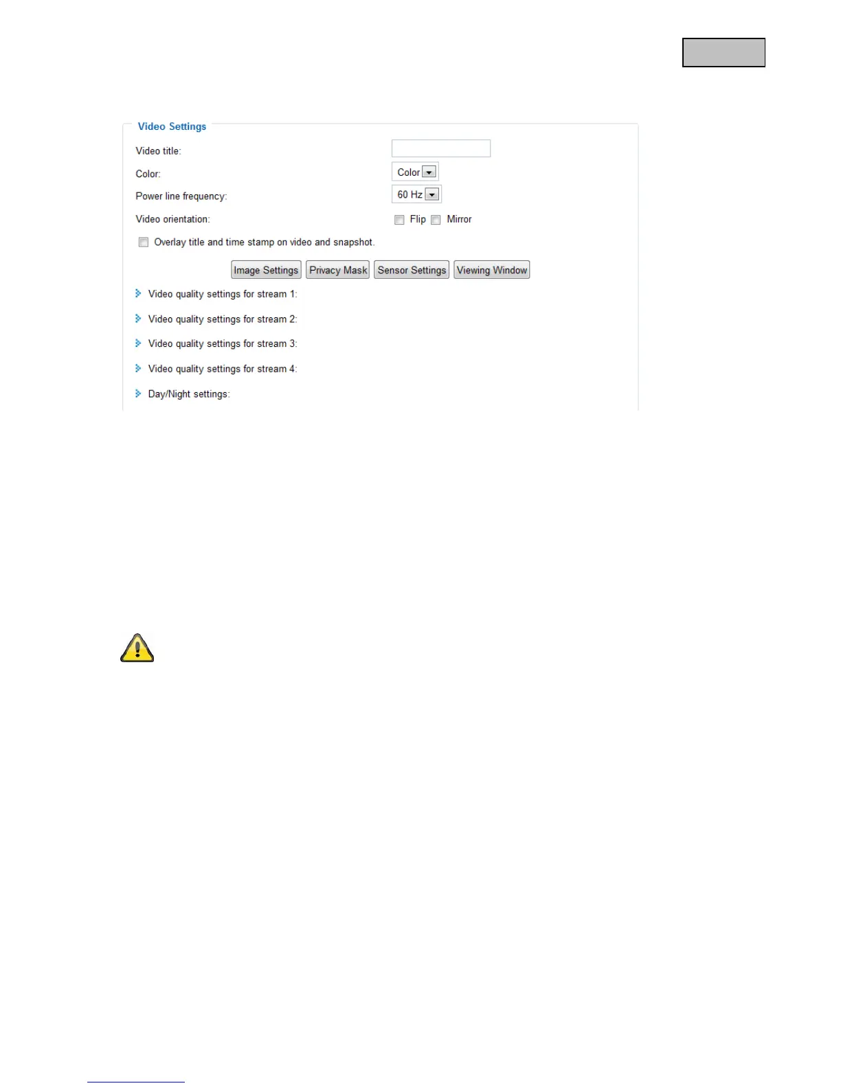 “Flip” Rotates the video horizontally. Select this option if the camera has been installed upside down.