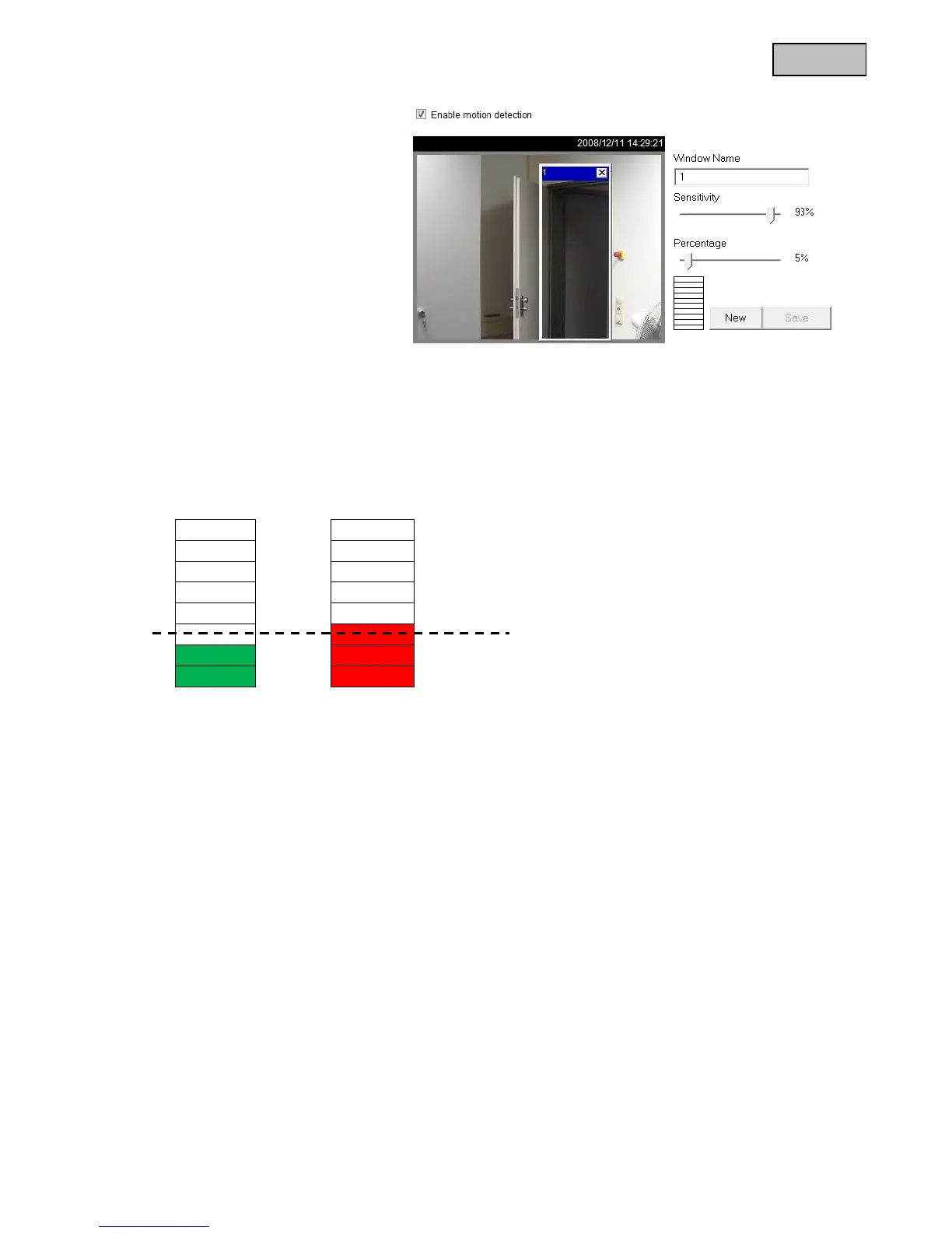 picture variation is above the surveillance level. If the bar is red, the detected window appears with a red