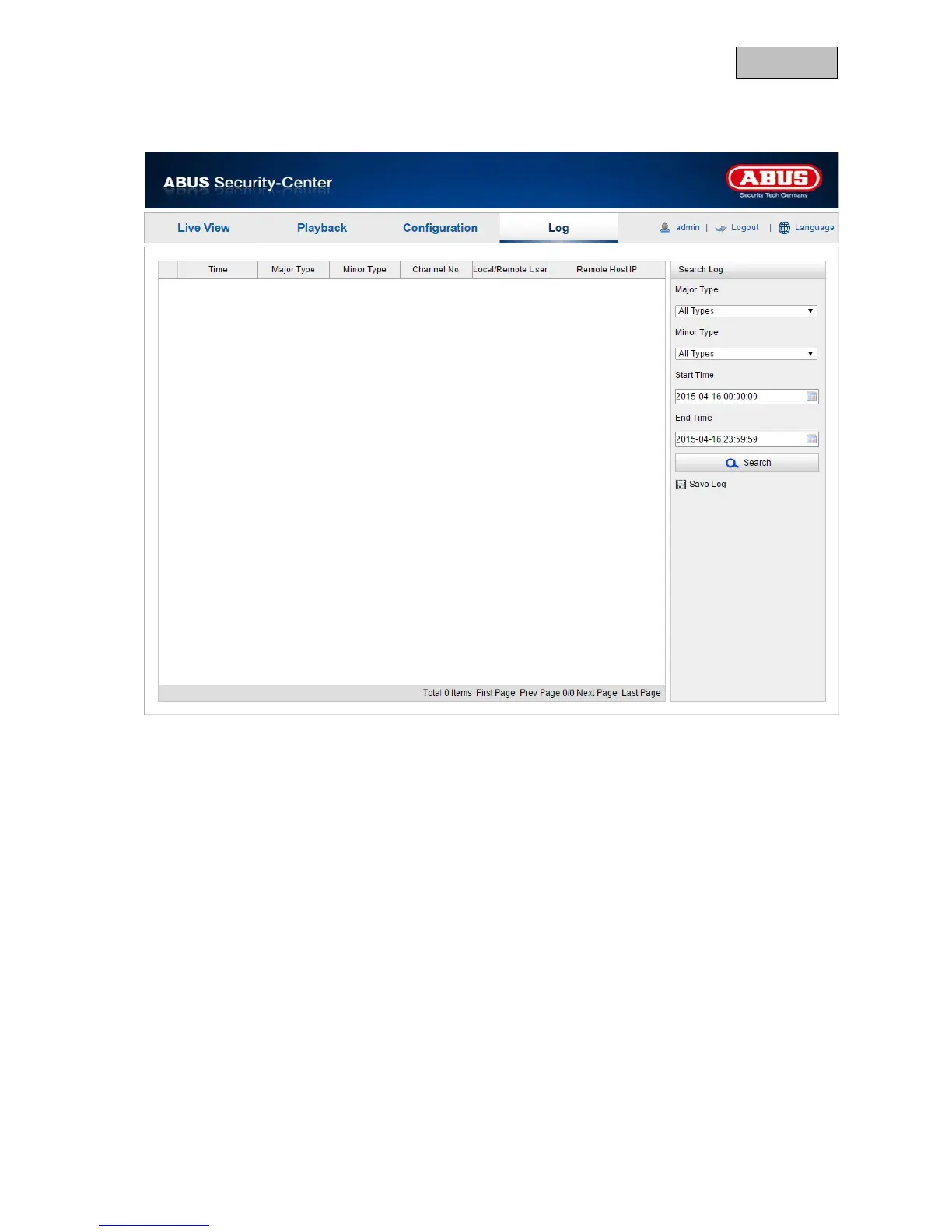 3. Click on Search to search for log files. The corresponding log files are displayed in the log dialogue.